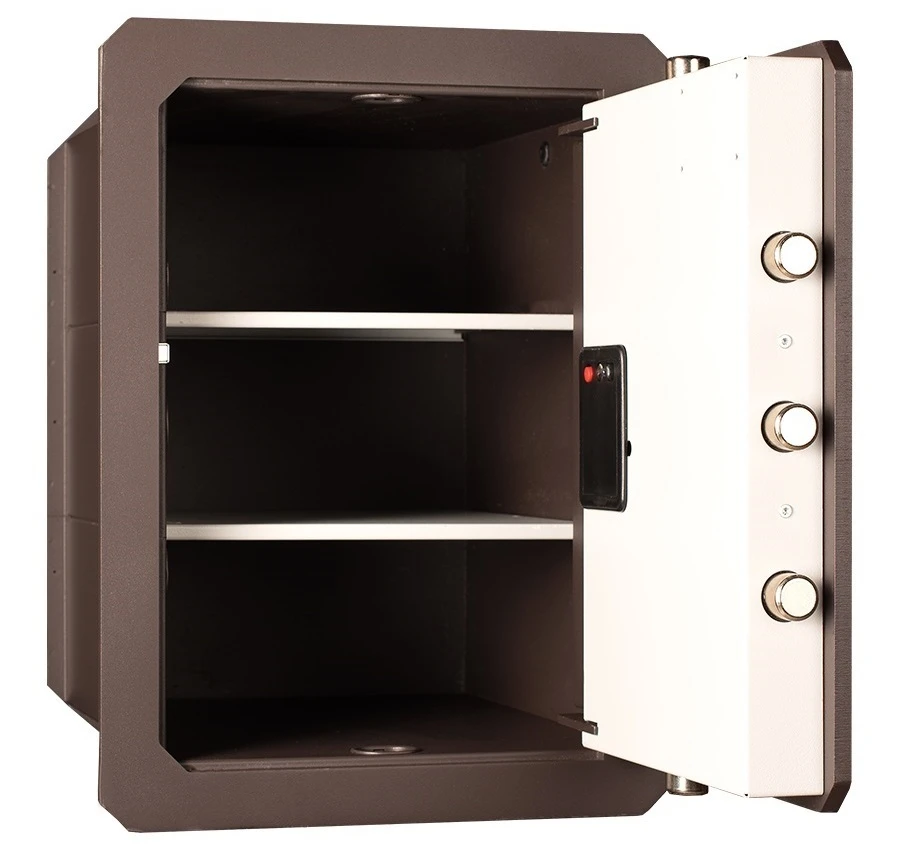 Для удобного и упорядоченного размещения ценностей предусмотрены две полочки, разделяющие внутреннее пространство на три уровня. При необходимости их можно снять и разместить предметы по всей полезной высоте сейфа.